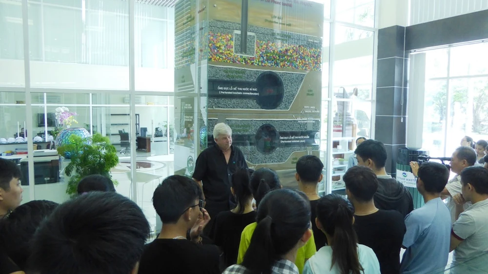 Ông Kevin Moore, Giám đốc điều hành của VWS đang thuyết minh công nghệ thu gom và xử lý nước rỉ rác cho sinh viên khoa Môi trường - Trường ĐH Khoa học Tự Nhiên TP.HCM.