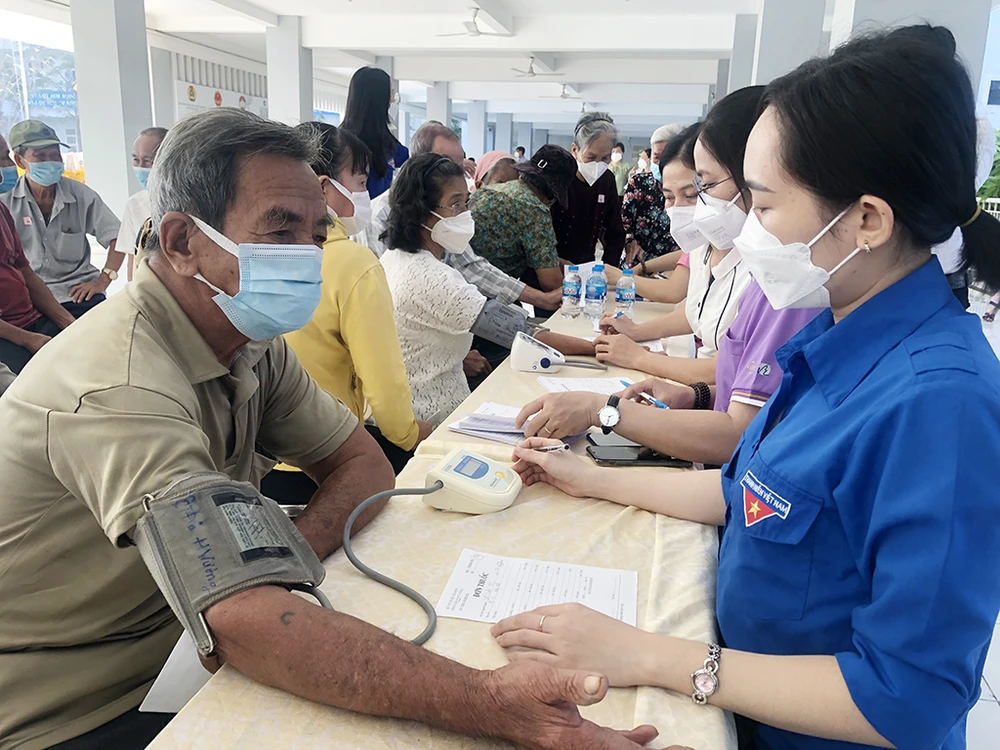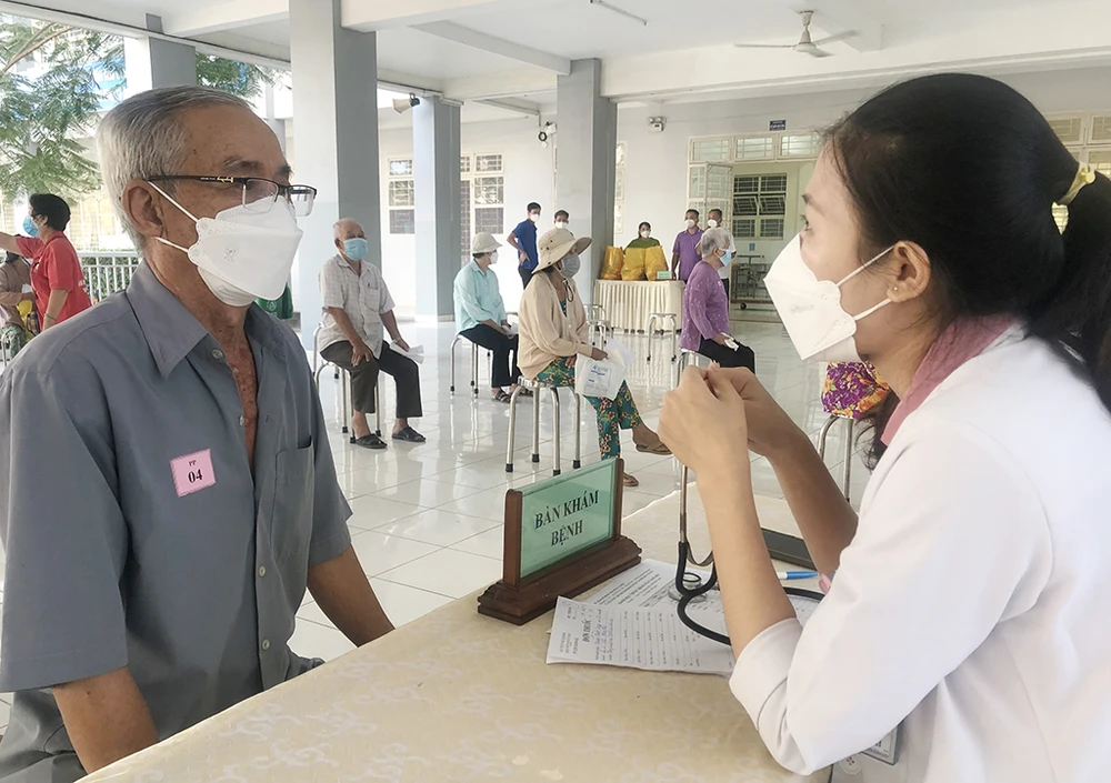 Các y bác sĩ đang kiểm tra và sàng lọc bệnh cho người dân