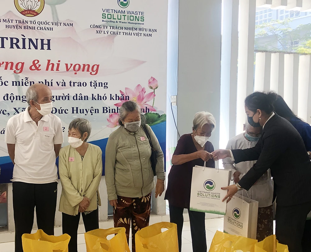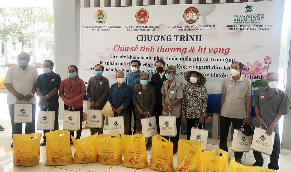 Sáng ngày 16-1, Công ty TNHH Xử lý Chất thải Việt Nam (VWS) phối hợp với Công đoàn viên chức TP.HCM cụm thi đua số 2, Tổ Đại biểu HĐND TP.HCM đơn vị huyện Bình Chánh, Ủy ban MTTQ Việt Nam huyện Bình Chánh tổ chức tặng quà, khám bệnh, phát thuốc miễn phí và tư vấn sức khỏe cho 400 gia đình chính sách, nghò, khó khăn trên địa bàn huyện Bình Chánh (TP.HCM). Trong đó, phụ trách thăm khám, phát thuốc do đội ngũ y bác sĩ thiện nguyện của Bệnh viện Hùng Vương (TP.HCM) thực hiện.