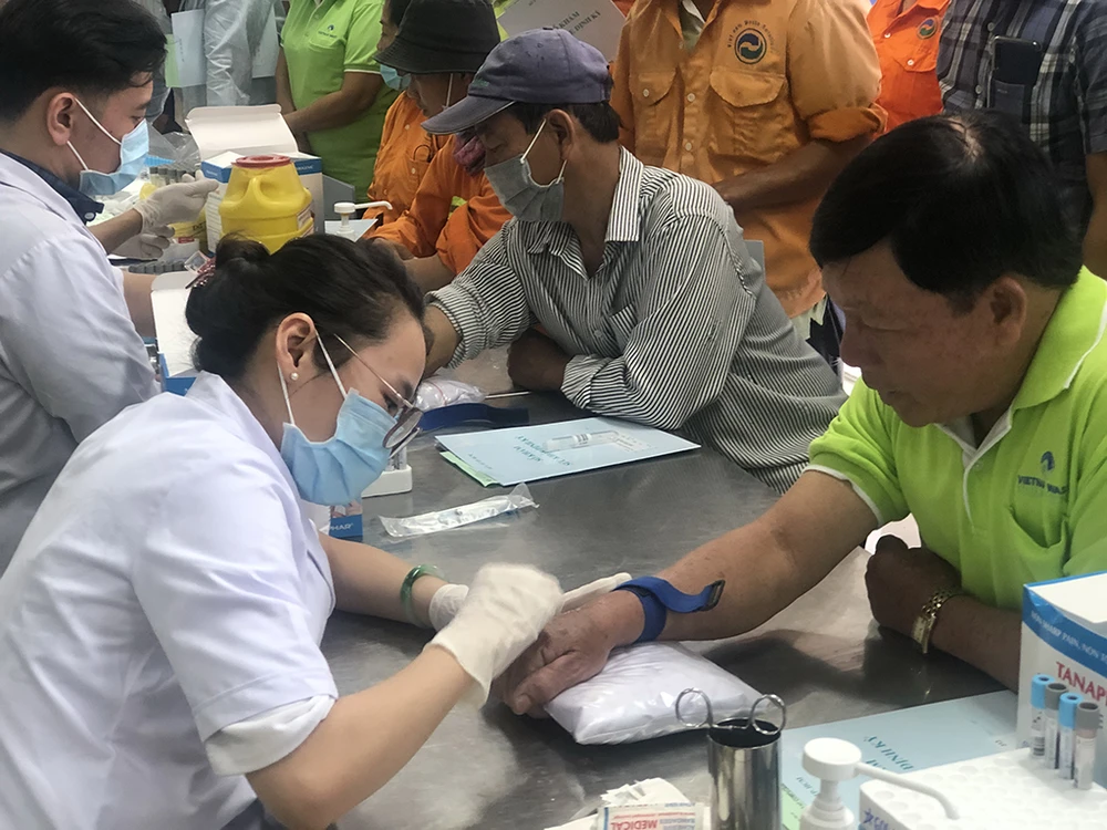 Sáng 27-11, tại Khu Liên hợp xử lý chất thải Đa Phước, gần 350 cán bộ, chuyên gia, nhân viên, người lao động… của VWS đã được các bác sĩ, y tá của Bệnh viên Nhân dân 115 (TP.HCM) thực hiện thăm khám bệnh định kỳ.