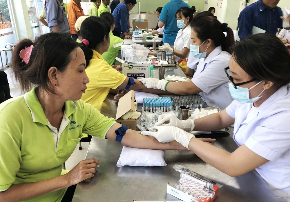 Tiến hành lấy máu xét nghiệm cho người lao động