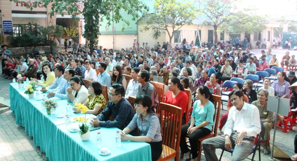Đông đảo người dân bốn xã ở Bình Chánh đến nhận quà của ban tổ chức và nhà tài trợ.