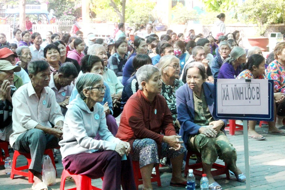 Người dân xã Vĩnh Lộc B đến dự lễ nhận quà.