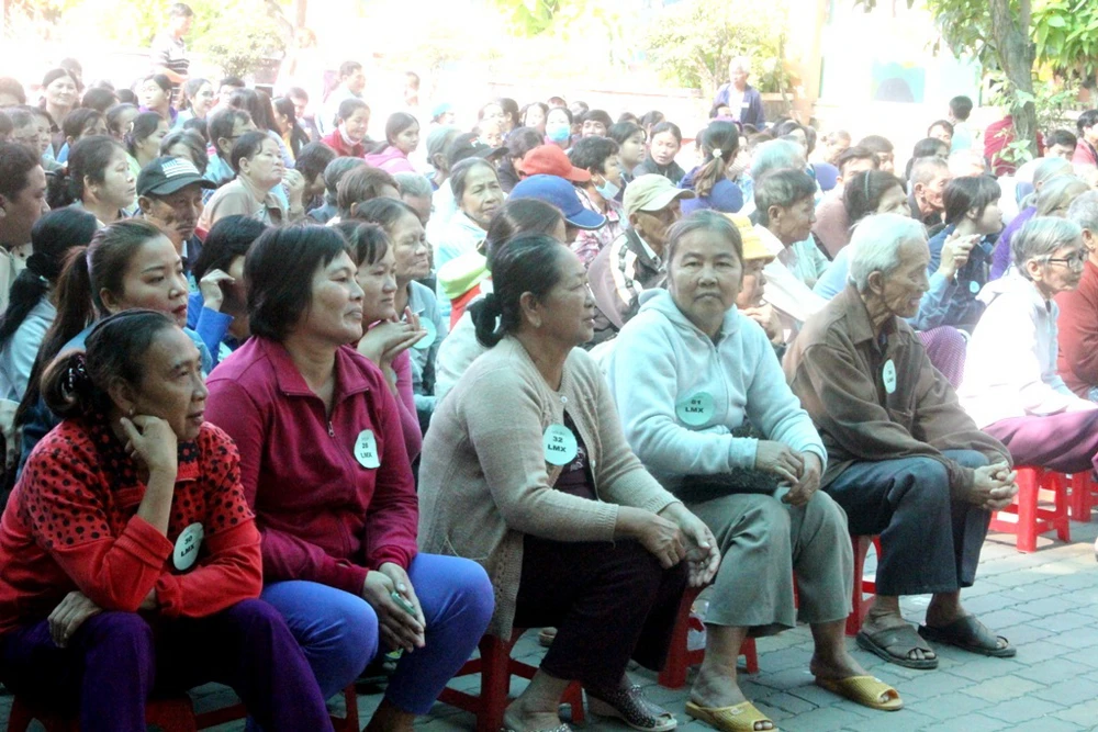 Người dân xã Lê Minh Xuân đến dự lễ nhận quà.