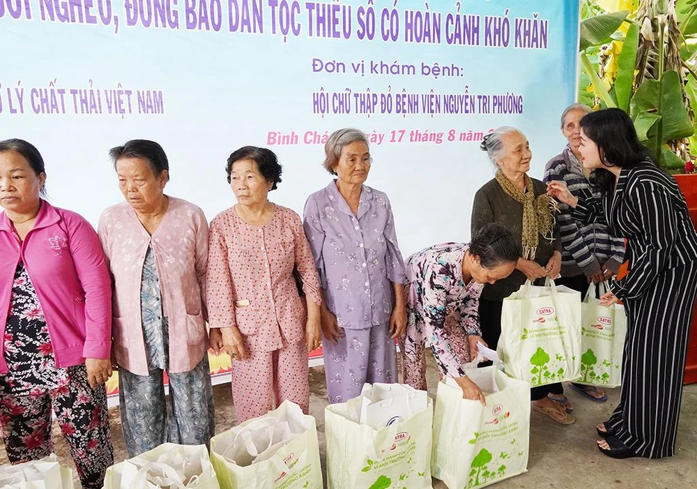 Cụ thể, sáng 17-8, tại Trung tâm Y tế xã Phong Phú, huyện Bình Chánh, TP.HCM, thông qua sự tài trợ của Công ty TNHH Xử lý chất thải Việt Nam (VWS), đã trao hơn 300 phần quà cho hộ nghèo, gia đình có công, gia đình chính sách, người cao tuổi, người già neo đơn và bà con người dân tộc thiểu số của xã Phong Phú (200 hộ), xã Đa Phước (100 hộ). Mỗi phần quà trị giá hơn 300.000 đồng gồm gạo, dầu và các nhu yếu phẩm.