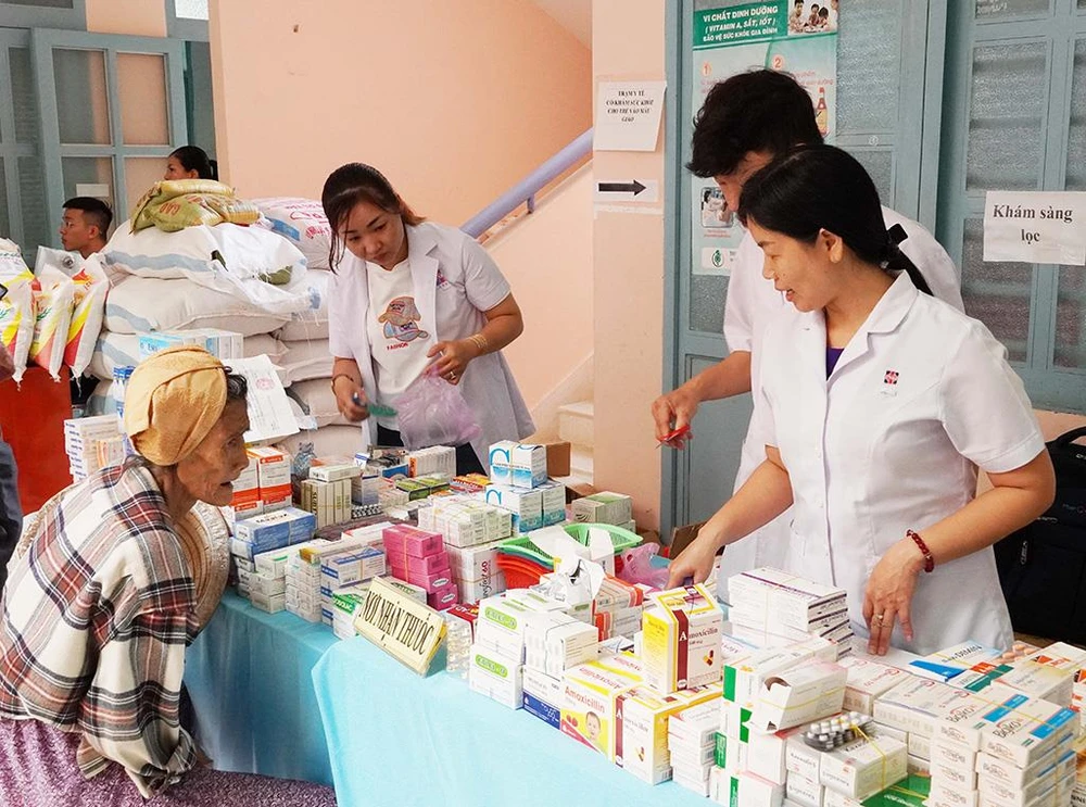Bên cạnh đó còn có sự tham gia của đội ngũ 30 y, bác sĩ tình nguyện BV Nguyễn Tri Phương (TP.HCM) tổ chức thăm, khám sức khỏe và phát thuốc miễn phí cho người dân.