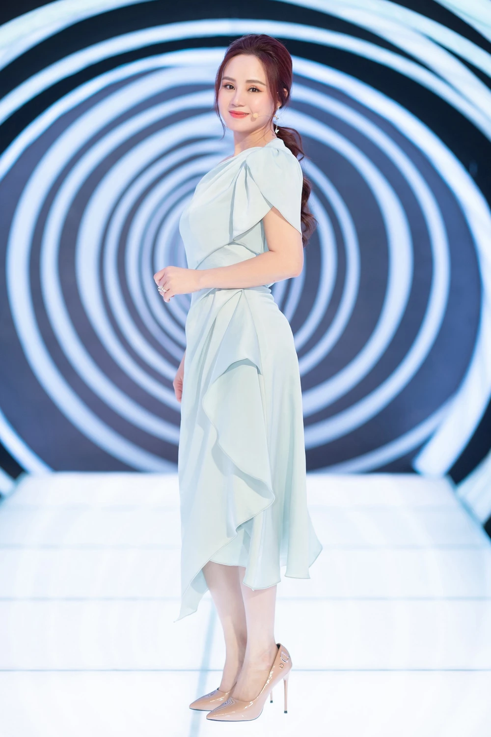 Dù bộn bề công việc nhưng dường như mọi yếu tố đều không tác động đến nhan sắc của Vy Oanh. Ca sĩ Vy Oanh xuất hiện với váy màu xanh biển, khoe vai trần và làn da trắng mịn. Trong chương trình, Vy Oanh rất vui khi được gặp rất nhiều đồng nghiệp và thần tượng MC, nhà báo Lại Văn Sâm.