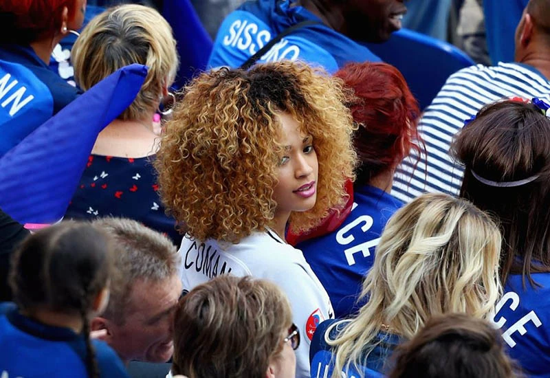 Sephora Goignans, bạn gái của Kingsley Coman, hòa cùng đám đông.