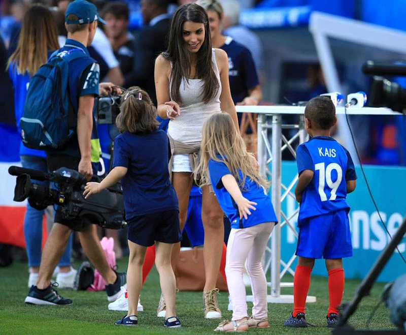 Ludivine Sagna có một cuộc trò chuyện với những đứa trẻ và con trai Kais trên đường biên ở Lyon sau khi Pháp giành chiến thắng.