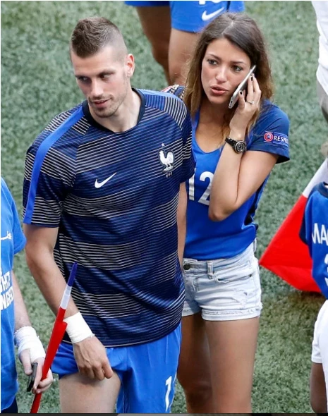 Dimitri Payet cuộc trò chuyện với vợ Ludivine (bên phải).