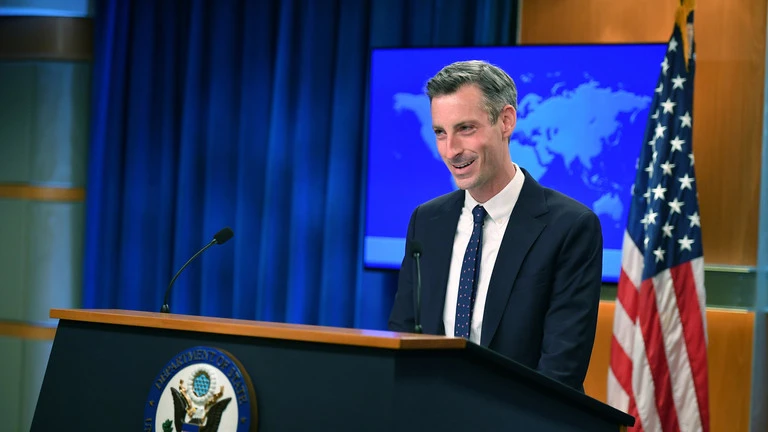 Phát ngôn viên Bộ Ngoại giao Mỹ Ned Price phát biểu trong một cuộc họp ngắn ở thủ đô Washington D.C, ngày 31-1. Ảnh: AP