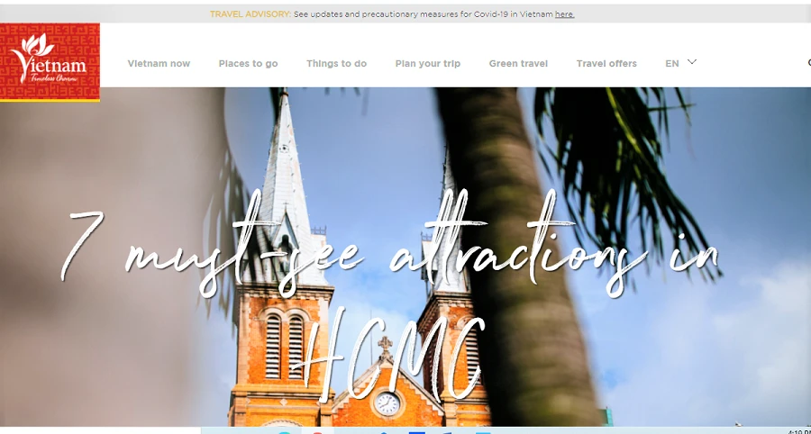 Gợi ý bảy điểm đến hấp dẫn cho du khách khi đến TP.HCM được quảng bá trên website du lịch Việt Nam.