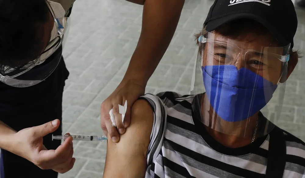 Một người đàn ông được tiêm vaccine ngừa COVID-19 tại một nhà thờ Công giáo ở thành phố Quezon, Philippines. Ảnh: EPA-EFE