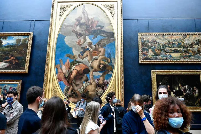 Du khách tham quan bảo tàng Louvre ở Paris (Pháp) trong mùa dịch COVID-19. WHO vừa công nhận COVID-19 có thể lan trong không khí. Ảnh: Aurelien Meunier/GETTY IMAGES
