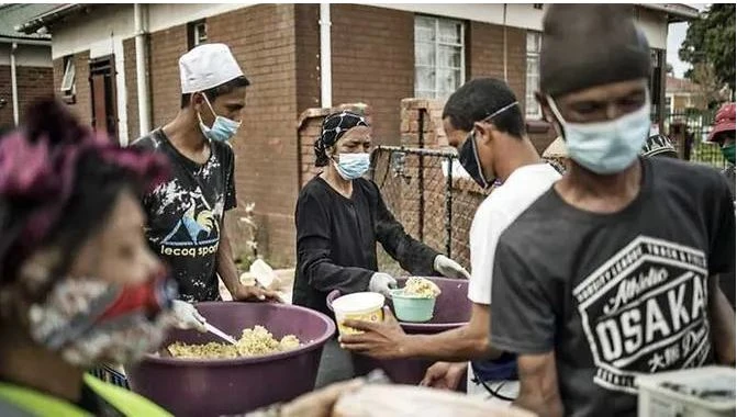 Một quầy phân phối thực phẩm cho người dân ở Nam Phi - quốc gia với 18.003 ca nhiễm COVID-19. Ảnh: AFP