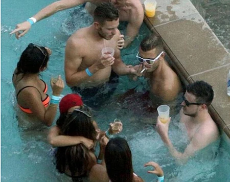 Wilshere hút thuốc lá trong một bể bơi lại Las Vegas.