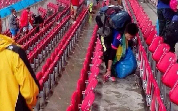 Hàng trăm các fan bóng đá nước này đã nán lại và nhặt rác tại các hàng ghế ở khán đài trước khi rời sân,Independent dẫn lời Yahoo Sport ngày 16.6.
