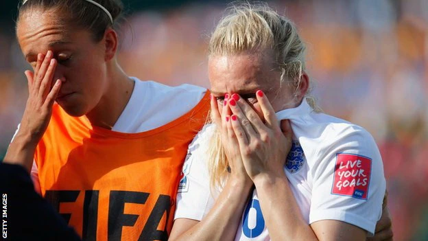 Tuy nhiên bi kịch lại ập đến cho đội bóng “tam sư” khi hậu vệ Laura Bassette đá phản lưới nhà phút bù giờ thứ hai khiến toàn đội Anh sụp đổ và tuyển Nhật vào chung kết.
