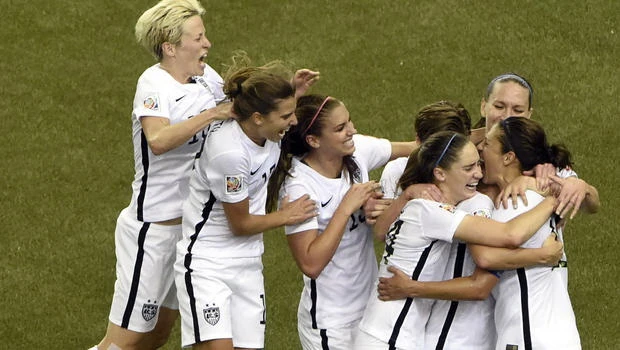 Các cô gái Mỹ ăn mừng sau khi thắng Đức 2-0 vào chung kết