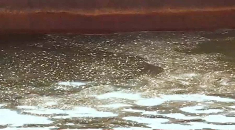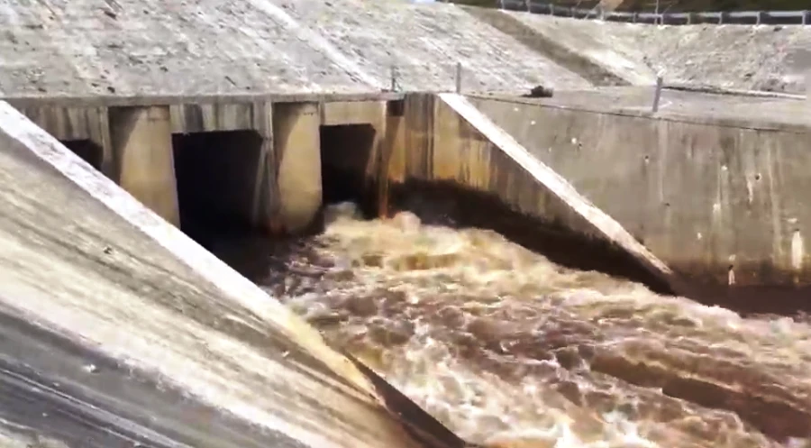 Nước xả từ đập dâng Ngàn Trươi đổi màu, có mùi hôi thối.