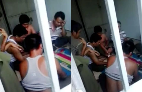 Các cán bộ xã Bình Minh đang đánh bài ăn tiền. (Ảnh cắt từ clip)