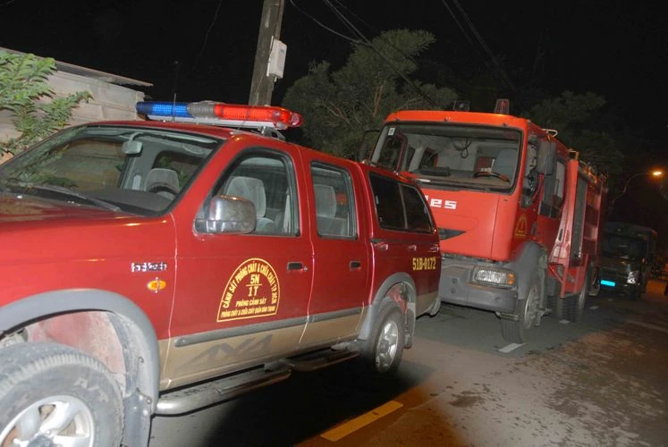 Rất nhiều xe chuyên dụng của lực lượng cứu hộ đã có mặt tại hiện trường. Ảnh: Xuân Ngọc