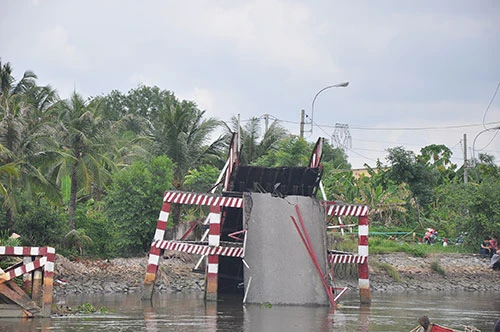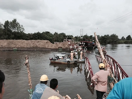 Hiện trường vụ tai nạn dẫn đến sập cầu.