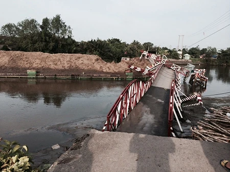 Clip xà lan quá tải đâm sập cầu ở TP.HCM. Tiến Tân thực hiện