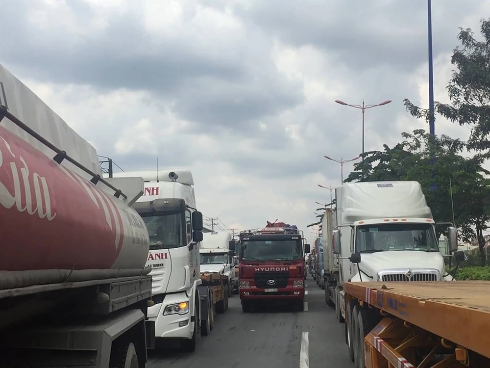Tại hiện trường, đầu xe container hư hỏng, dầu nhớt chảy lênh láng xuống đường. Ngoài ra, nhiều đoạn dải phân cách bị cày nát. Do phương tiện nằm giữa đường khiến giao thông qua khu vực ùn tắc nghiêm trọng. Hàng trăm phương tiện nối đuôi nhau giữa trời trưa nắng để chờ di chuyển qua.