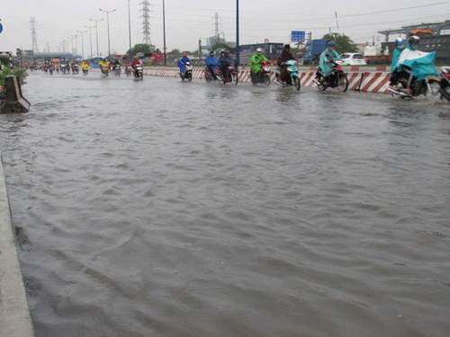 Một nhân viên của Công ty cấp thoát nước TP.HCM nhặt rác ở cống thoát nước gần chân cầu Rạch Chiếc, cho biết: “Cơn mưa to kéo dài gần một tiếng đồng hồ, kết hợp với triều cường dâng cao khiến nước rút chậm nên xảy ra tình trạng ngập cục bộ như chiều nay. May là mưa nhỏ chứ nếu mưa to kéo dài thì nước sẽ bị ngập sâu hơn”.