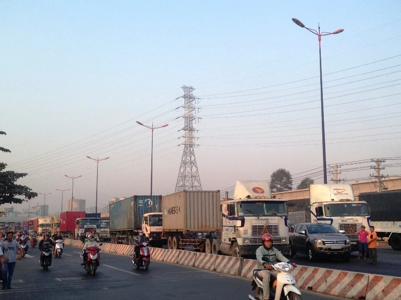 6 giờ 15phút sáng 1-3, xe container biển số 51C-288.15 lưu thông trên xa lộ Hà Nội theo hướng từ cầu Sài Gòn về ngã tư Thủ Đức.