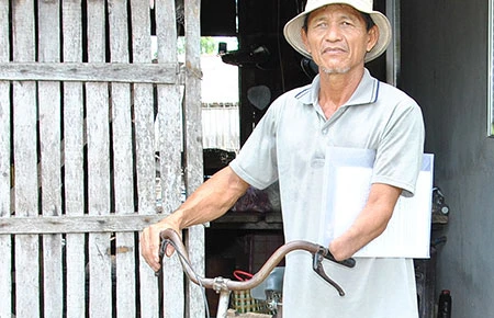 Mấy năm qua, ông Hoàng nhiều lần đi lại để đòi quyền lợi cho gia đình nhưng vẫn chưa được đáp ứng. Ảnh: NH