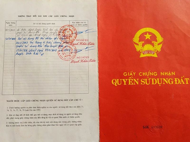 Ông Lưu Quý Ngành (69 tuổi, trú thôn 7, xã Vĩnh Phong) cho biết thời kỳ năm 1997-1998, UBND huyện Vĩnh Bảo đã triển khai cấp giấy đỏ cho toàn bộ hơn 900 hộ dân trong xã Vĩnh Phong. Sau khi huyện ký cấp, số giấy đỏ này đã được chuyển về UBND xã Vĩnh Phong để trao trả cho dân.