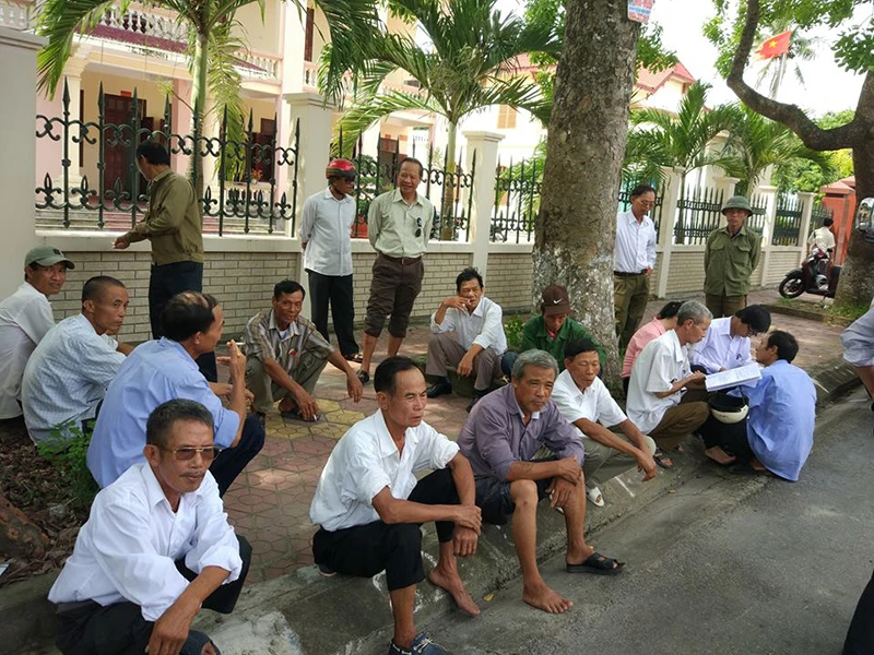 Người dân xã Vĩnh Phong phải nhiều lần kéo đến UBND huyện đề nghị trả lại các giấy đỏ bị “găm”. (Ảnh chụp tháng 7-2016) Ảnh: ĐỖ HOÀNG