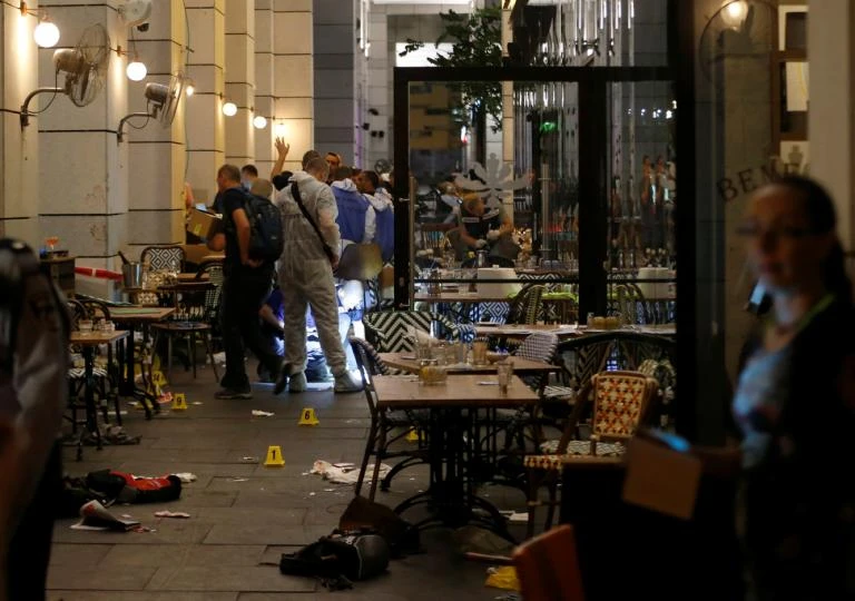Một nhà hàng tại khu phức hợp nơi các tay súng Palestine tấn công. Ảnh: Reuters