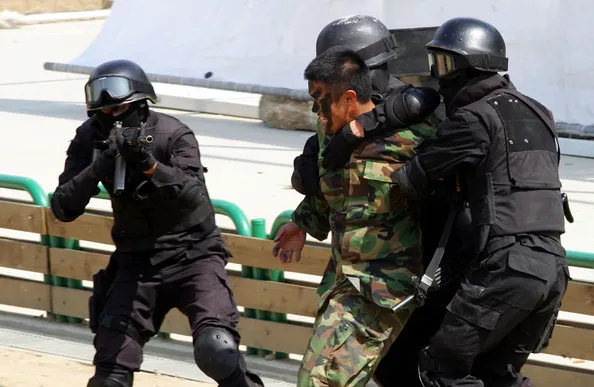Quân đội Hàn Quốc thực tập đối phó trong một tình huống binh sĩ xả súng (Nguồn: Yonhap News)