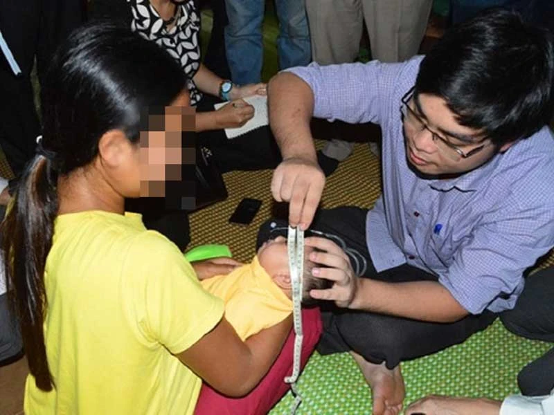Em bé đầu tiên mắc hội chứng đầu nhỏ do virus Zika tại Việt Nam. Ảnh: ĐD