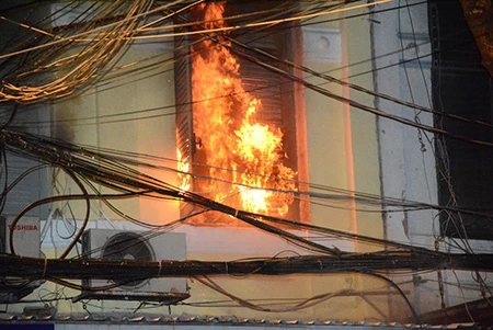 Khoảng 19 giờ 15, khói đen bốc lên ở cửa hàng điện tử - điện máy cao hai tầng trên đường Tôn Thất Đạm (phường Bến Nghé, quận 1, TP.HCM). Lửa bùng nhanh, phủ kín cửa hàng điện tử. Lực lượng tại chỗ phát hiện cầm bình CO2 tới ứng cứu nhưng đám cháy quá lớn nên đành bất lực. Khu vực xảy ra hỏa hoạn nằm sát khu chợ và dân cư tập trung đông làm hàng chục người sợ hãi nháo nhào chạy ra ngoài.