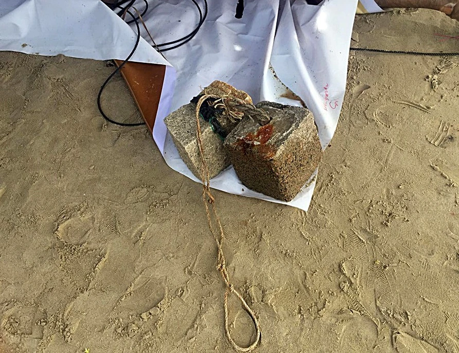Hai tảng đá cột vào chân anh Tài