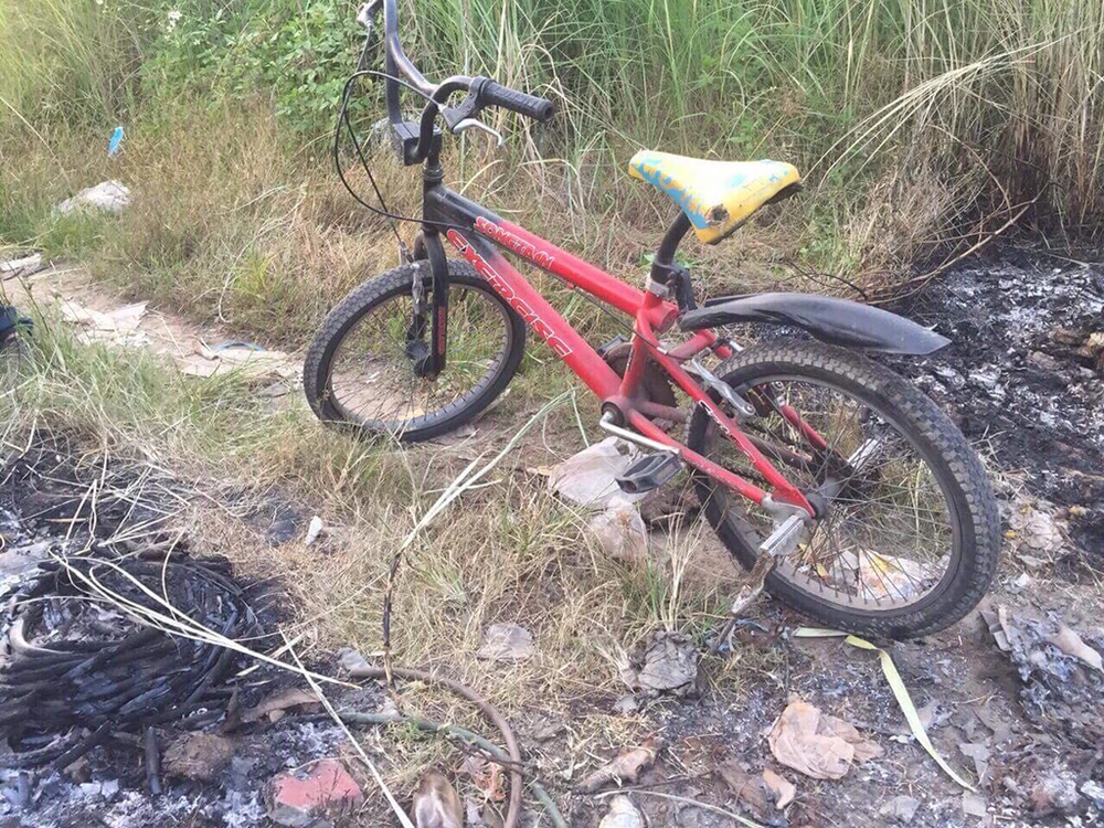 Tại hiện trường, thi thể người đàn ông cháy đen, gần đó có một xe đạp. Cảnh sát phát hiện một nắp nhựa màu đỏ cách xe đạp chừng 0,5 m.