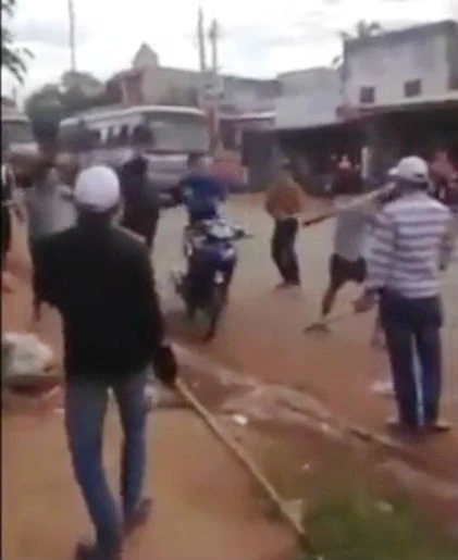 Hình ảnh hai nhóm chém nhau trên đường. Ảnh cắt clip