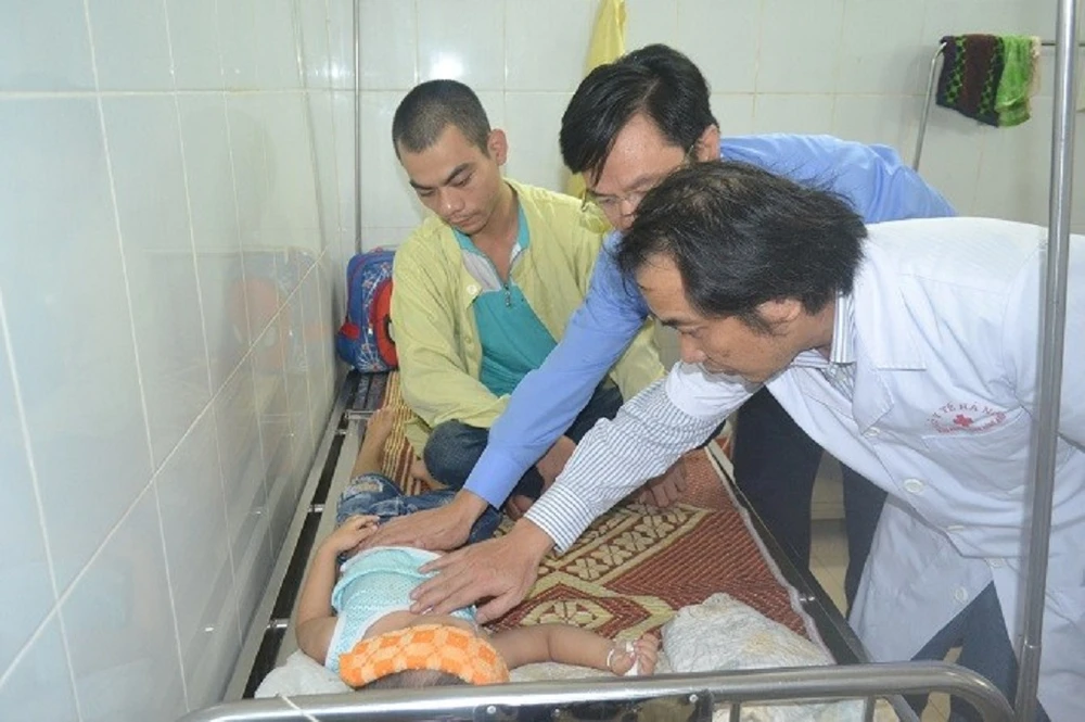 Các bác sĩ thăm khám cho bệnh nhi bị ngộ độc Ảnh: HP