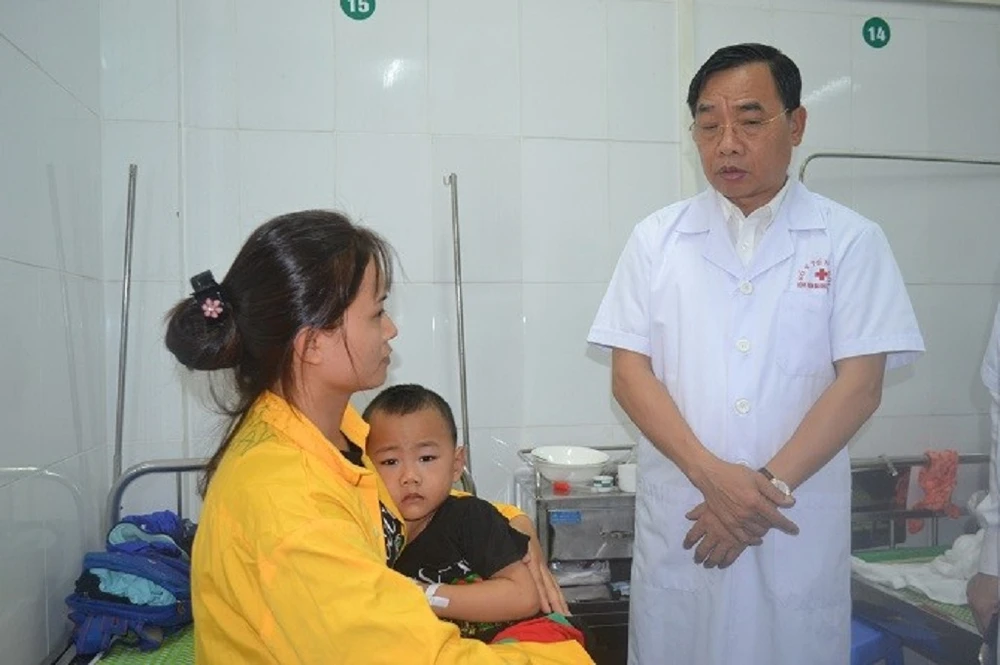 Giám đốc Sở Y tế TP Hà Nội thăm hỏi tình hình sức khỏe các bệnh nhi.
