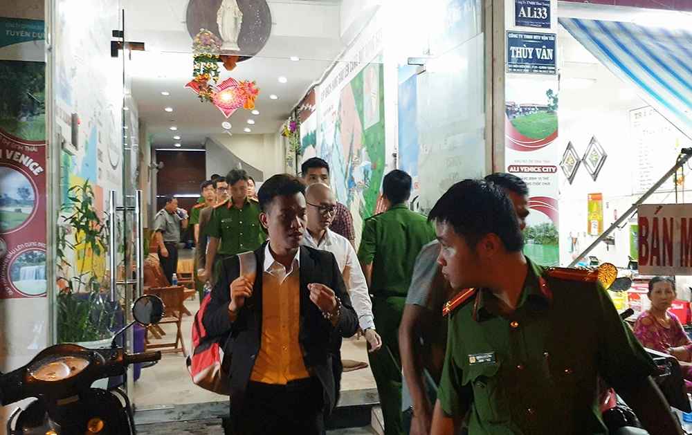 Chiều 20-9, công an tiếp tục khám xét trụ sở của Công ty Địa ốc Chiến Binh Thép - chi nhánh của Công ty Alibaba trên địa bàn quận Thủ Đức. Ảnh T-Y