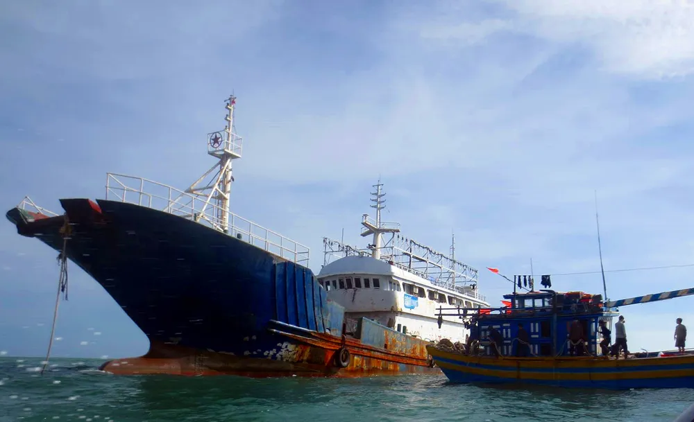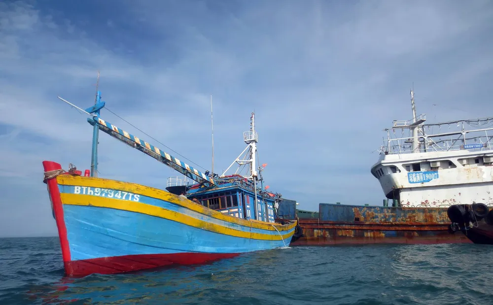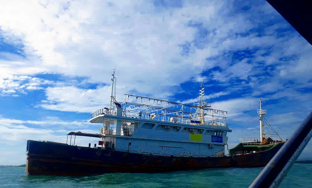 Con tàu này sơn hai màu xám, trắng và có khoảng hơn 100 bóng đèn cao áp trang bị xung quanh, nhiều khả năng đây là tàu hành nghề đánh bắt hải sản của Trung Quốc. Do đánh bắt gần đó nhưng nhiều giờ liền không thấy dấu hiệu có người trên tàu nên đến 14g cùng ngày thuyền trưởng quyết định cử thuyền viên qua con tàu này để kiểm tra.