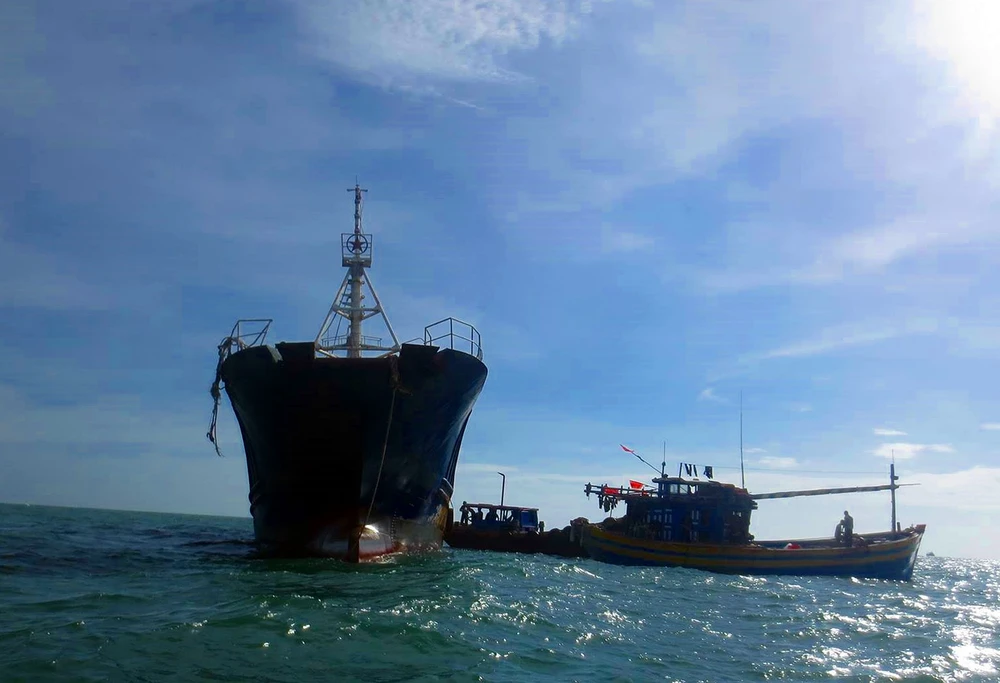 Sau hải trình gần hai ngày, hai tàu cá của các ngư dân đã lai dắt thành công con tàu này về đất liền an toàn. Theo các ngư dân, kiểm tra thân tàu phát hiện dấu vết trên mạn tàu có thể đã xảy ra một vụ va đập mạnh.