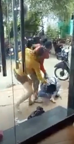 Một phụ nữ bị hai phụ nữ khác đánh đập dã man. Ảnh cắt từ clip