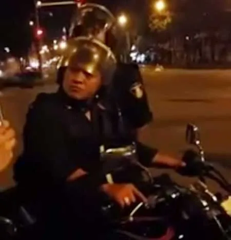Lời thoại cùng hình ảnh cho thấy có việc hai CSCĐ đi trên chiếc mô tô đặc chủng kiểm tra giấy tờ của người đàn ông trên. Nhưng ở đây giữa hai bên thiếu “sự hợp tác”, vì CSCĐ yêu cầu kiểm tra giấy tờ và đòi giữ cả chìa khóa xe của người dân; còn người đàn ông thì rút chìa khóa xe (vì sợ bị giật chìa khóa) và đề nghị CSCĐ xuất trình thẻ trước khi làm việc. Tiếp đó, CSCĐ nói chỉ có CSGT mới có thẻ tuần tra (thường gọi là “thẻ xanh”) và lặp lại yêu cầu xuất trình giấy tờ, trong đó có CMND nhưng người dân lại nói không có mang theo nên đề nghị đợi vợ về nhà gần đó lấy ra… Sự đôi co kéo dài và sau đó, một trong hai CSCĐ đã túm cổ áo người dân kéo đến gần người phụ nữ đi kèm gằn giọng: “Đưa chìa khóa đây, đưa không?”…
