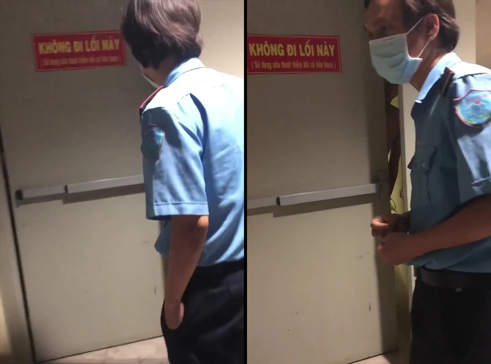 Bảo vệ toà nhà phát hiện, giải cứu nam sịnh. Ảnh cắt từ clip