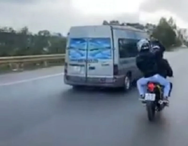 Trước đó, trên mạng xã hội xuất hiện đoạn clip nhiều người đi xe máy (được cho là phượt thủ) đã liên tiếp dùng đá ném vào xe khách 49B-002.29 đang chạy mặc dù bị hỏng bánh.
